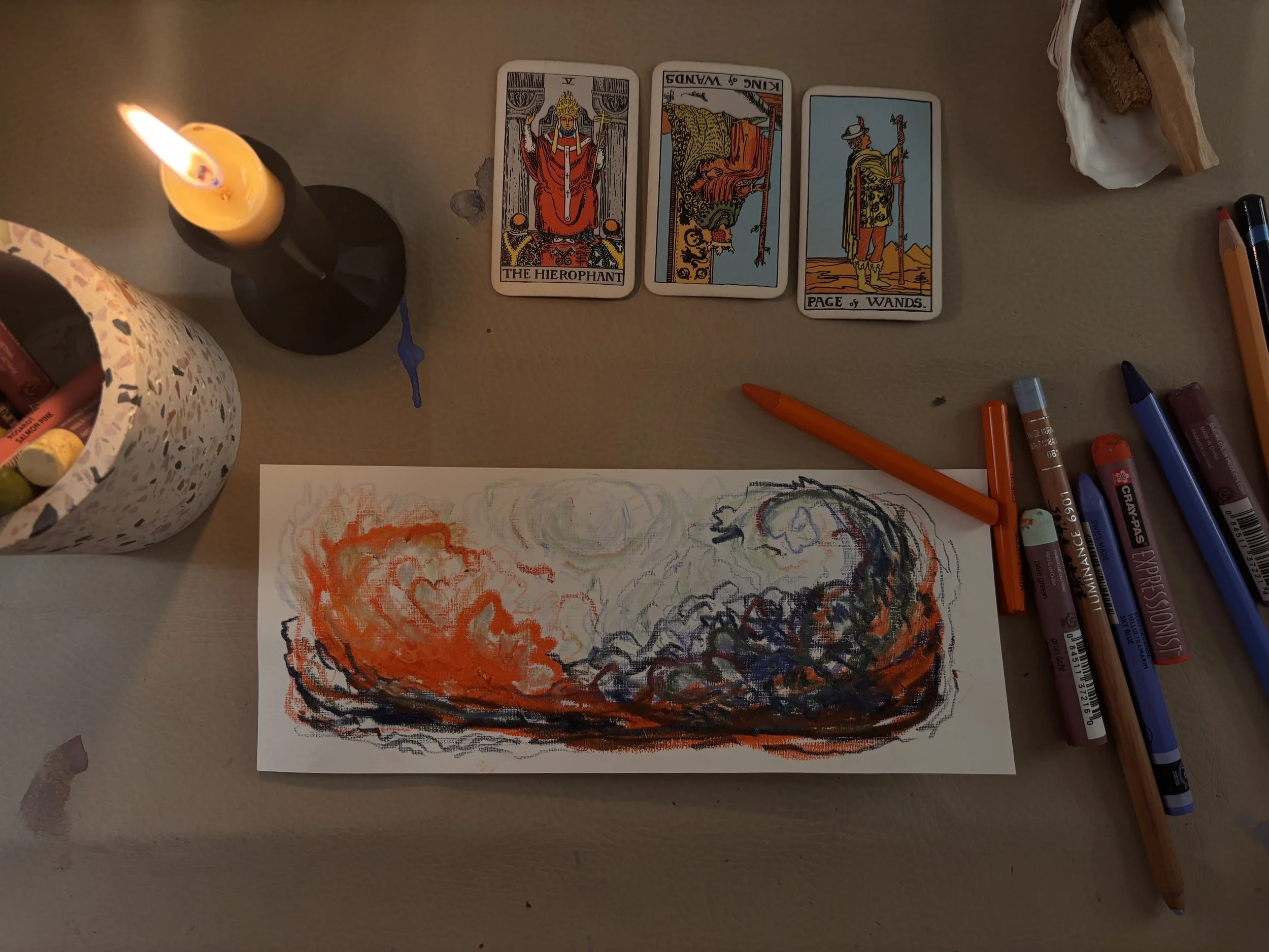 For the first half of the day, I wandered about my studio trying to “set the mood” for creative play. I lit candles and incense and drew tarot cards and tried to empty my thoughts onto the pages of my journal. When that didn’t work, I began aimlessly tidying, vacuuming, reorganizing, shuffling papers, until finally, after I’d seemingly done everything else I could think of, my hands found their way to my pencils and pastels, and the discomfort of duality within me found its way out and onto a small strip of paper in a creative flow that couldn’t be forced.