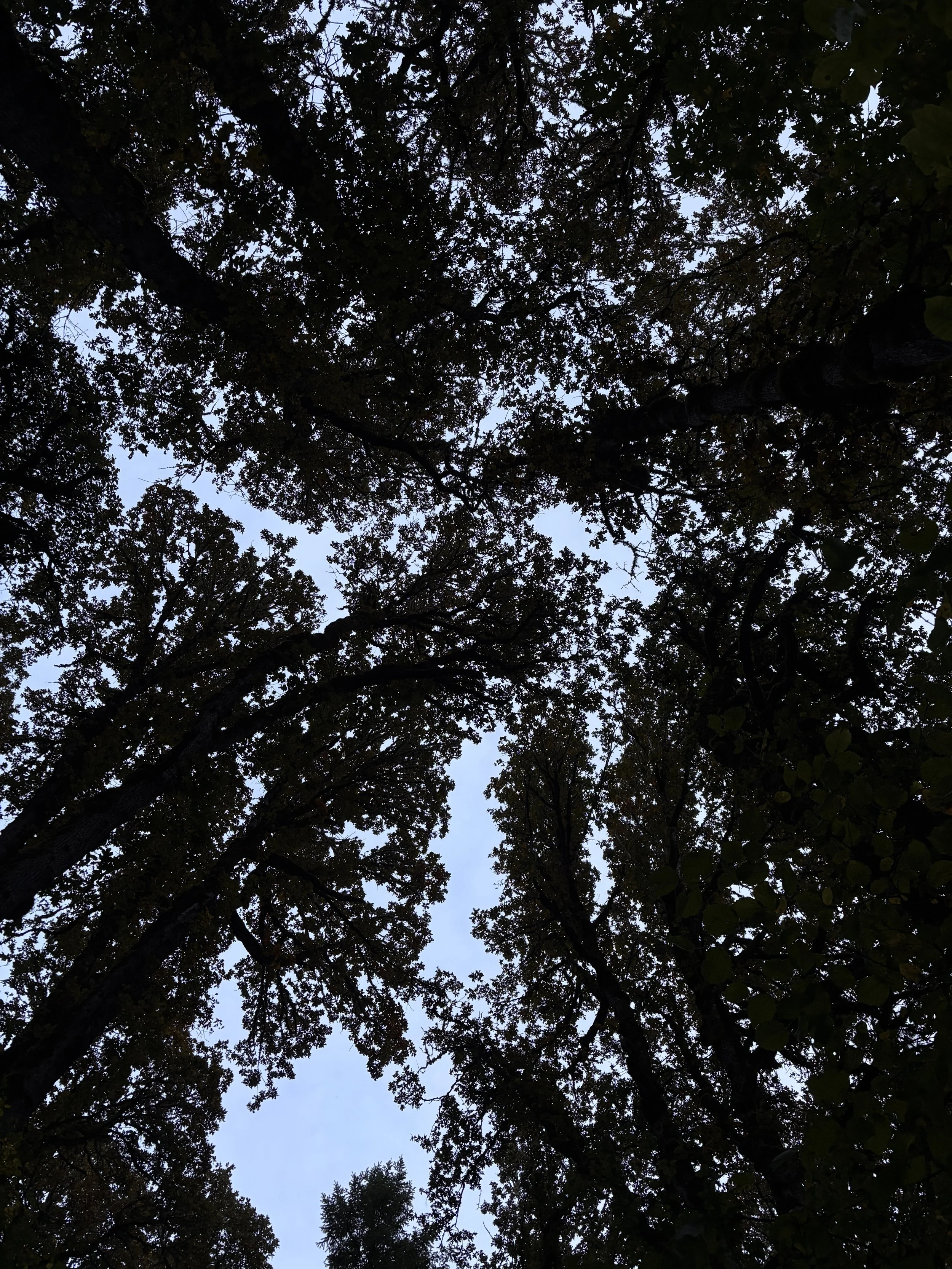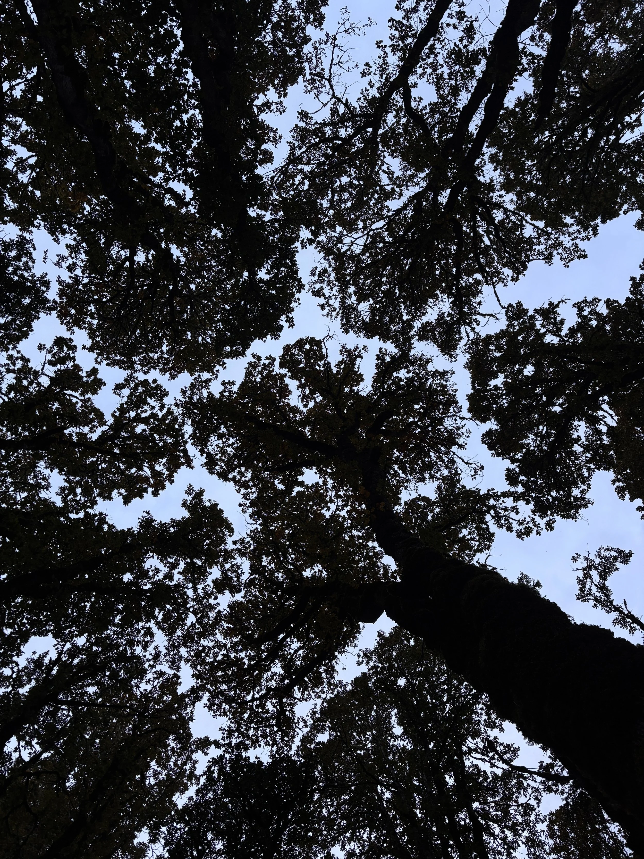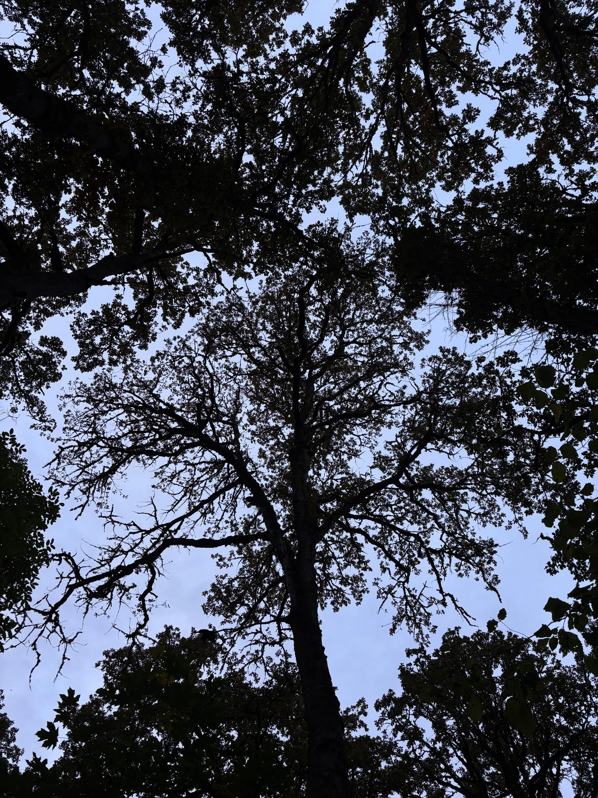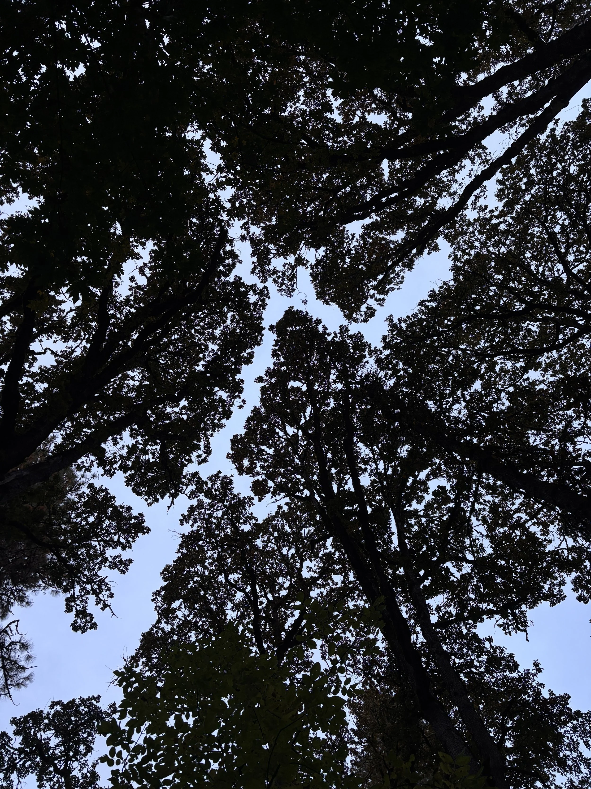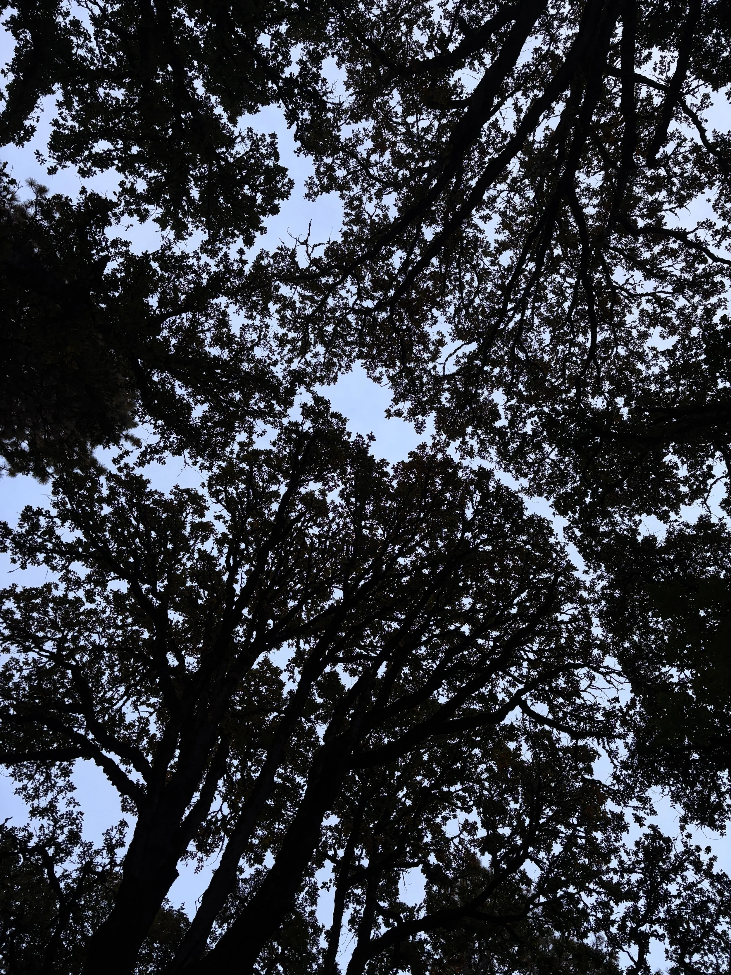 Yesterday I took a late afternoon walk in the forest and spent most of the time with my head tilted back looking up at the tree canopies silhouetted against the cloudy sky. The branches of the tall oak trees stretched toward one another, leaving small rivers of space between their branches. I marveled at the patterns that emerged from this angle. A reminder that if we forget to look from another perspective, we’ll miss a whole lot of magic and beauty along the way.