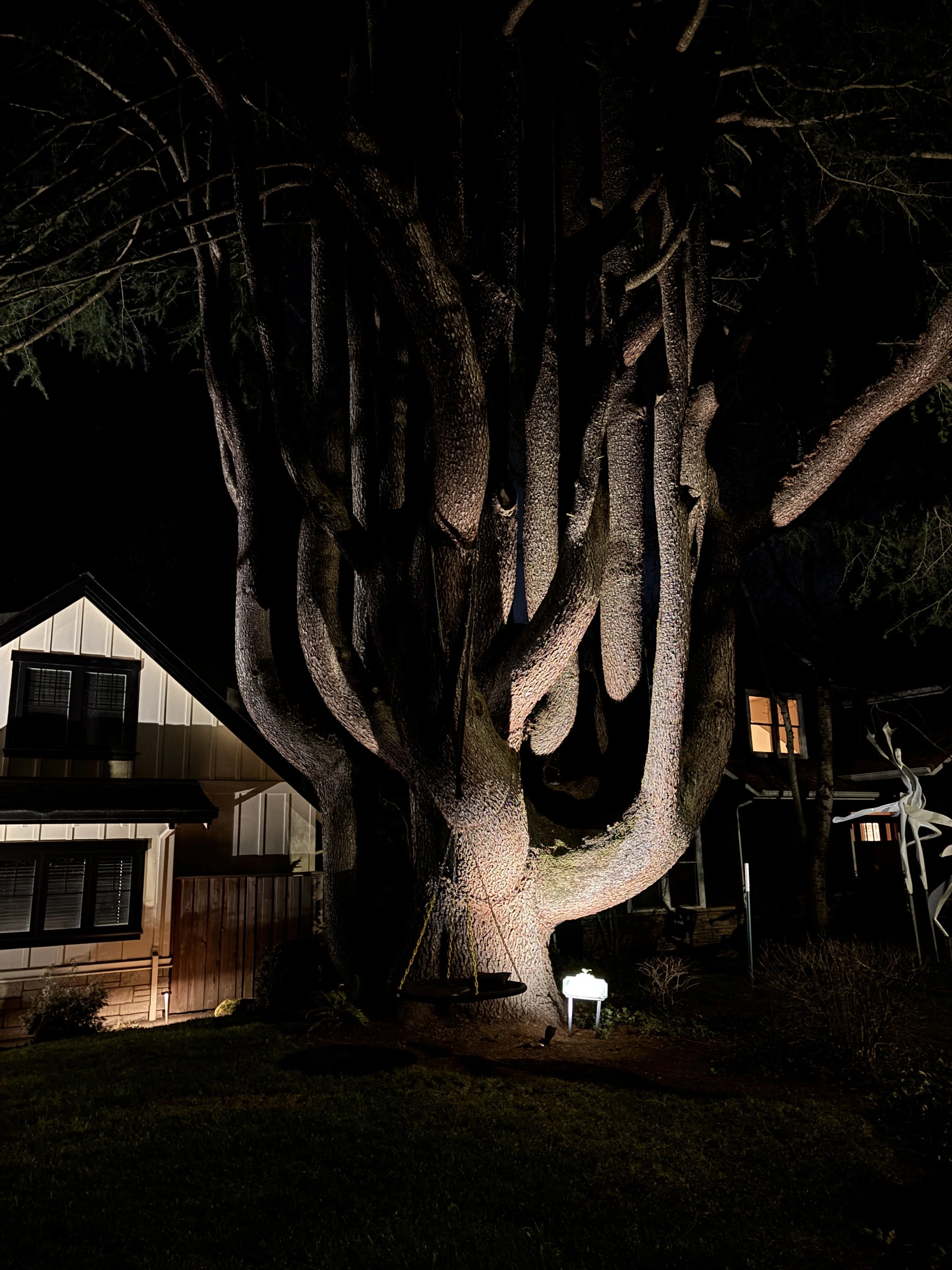In the evening, Che and I went on a date, while my dad watched C & O. After our dinner, we walked in the dark through the nearby neighborhood and came across an incredible tree! Earth magic.